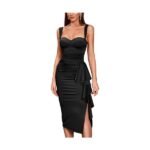 Women’s Formal Evening Midi Cocktail Dress Built-in Bra Ruched Sleeveless Slit Ruffle Fall Wedding Guest Dresses