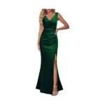 Women Sleeveless V Neck Split Evening Cocktail Long Dress
