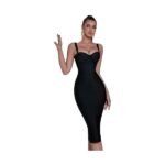 Bandage Womens Formal Dress Spaghetti Strap Bodycon Prom Dress Celebrity Sexy Sleeveless Midi Evening Club Party Wear